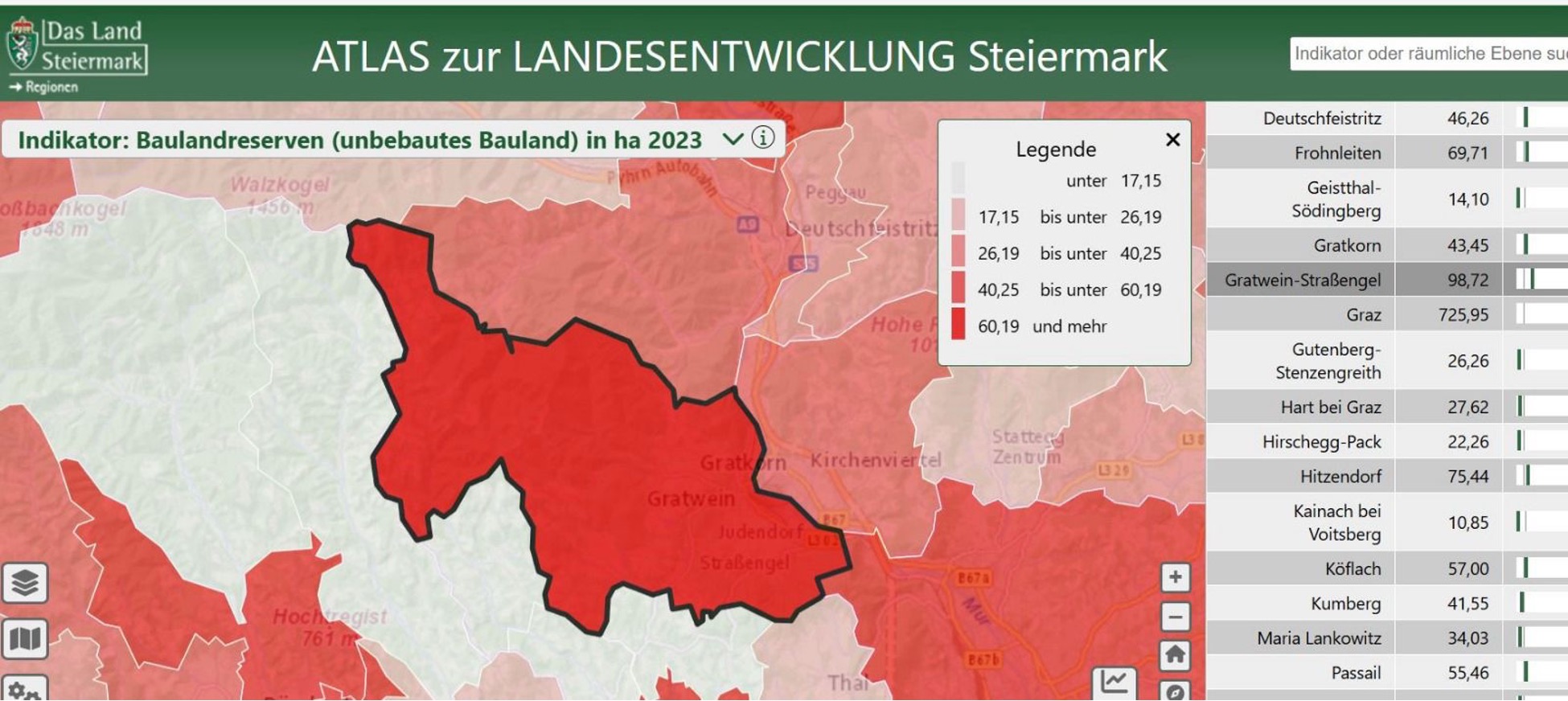 Im Atlas zur Landesentwicklung Steiermark werden 98,72 ha (2023) als unbebautes Bauland angeführt. Wir beziehen uns also auf die offiziellen Zahlen des Landes Steiermark, die von GR Primas bzw. der SPÖ hoffentlich nicht angezweifelt werden.